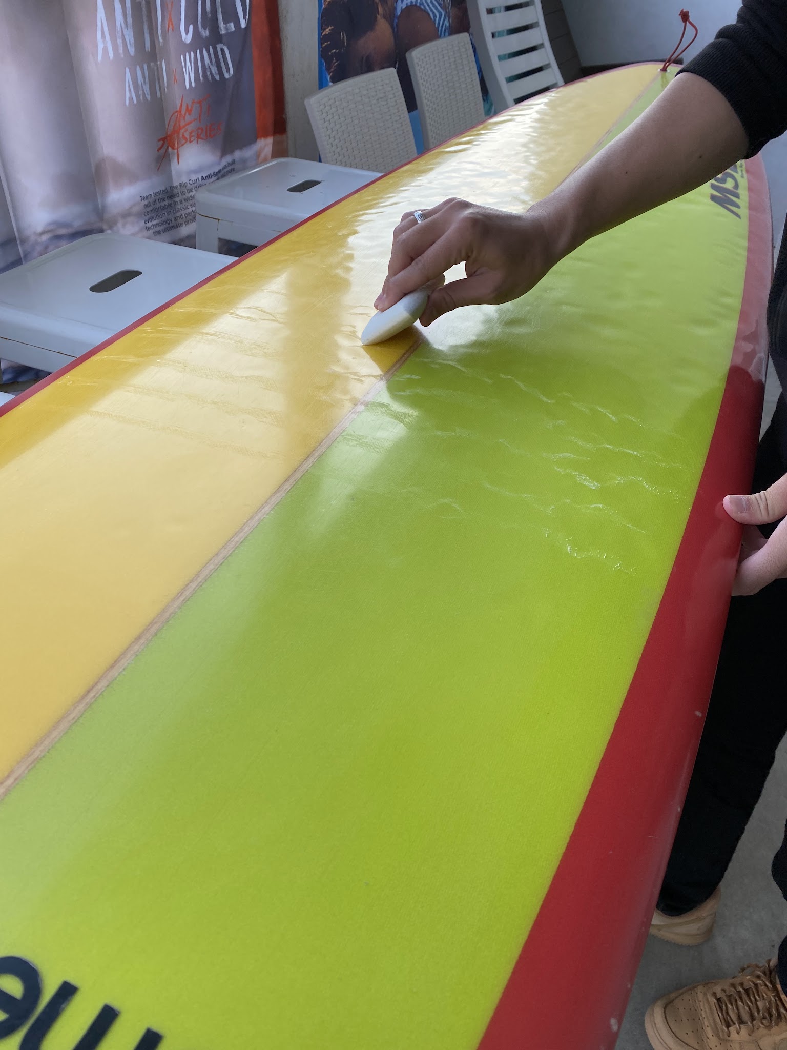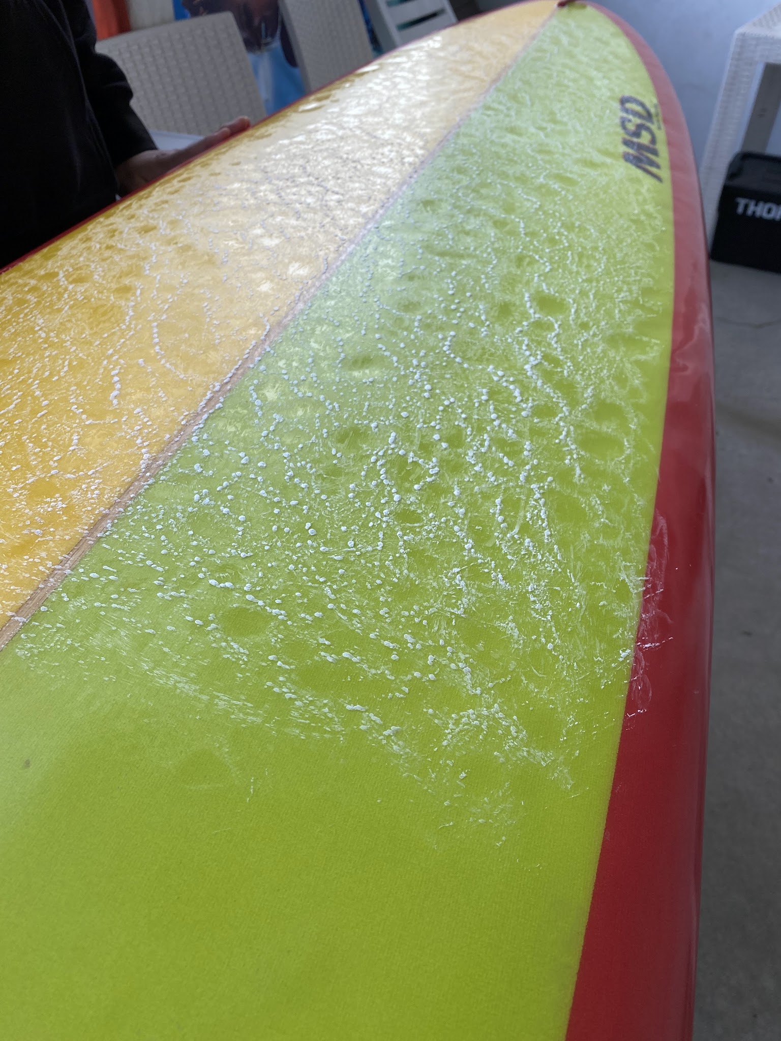 クリーニングサービスでは、特別無料でボトム面(裏面)に撥水コーティング(ボードが進みやすくなり、少しですがテイクオフが早くなる)をしています!