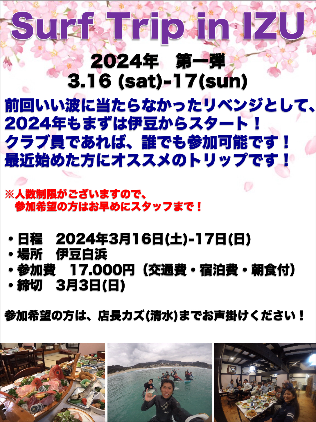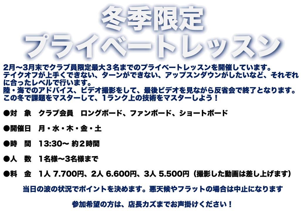 お知らせ一覧 News Archive HOME | 投稿一覧 Category: すべて お知らせ paypay20%還元! またまた藤沢市のみPayPayポイント20%還元が開催してます! 店 2024年3月1日 お知らせ 三連休から春🌸⁇ おはようございます! 今日も寒い朝となっています。 ただ、よく見てい 2024年2月9日 お知らせ 久しぶりに☃️ 久しぶりに江ノ島にも雪が積もりました☃️ とは言っても雪国に比べたら 2024年2月6日 お知らせ 伊豆サーフトリップのお知らせ 2024年2月2日 お知らせ サーフィン撮影サービス 2024年1月29日 お知らせ 冬限定プライベートレッスン 2024年1月29日 お知らせ USED BOARDS 増えました! 中古ボード、主にショートボードが増えました! 気になる方は要チェック 2024年1月16日 お知らせ 乗り納会! 今年最後は波が無かったけど、みんなしっかり乗り納め出来ましたー! 2023年12月31日 お知らせ RIPCURL SUPER SALE! 開催中のRIPCURL SUPER SALEは12/31までです! 2023年12月28日 お知らせ 入荷情報! RIPCURL KID’S 女の子のトレーナー入荷! 税込6.490 2023年12月28日 ページ1 ページ2 ページ3 ページ4 ページ5 … ページ9 Category カテゴリー お知らせ 波情報 過去の記事2025年07月2025年04月2025年03月2025年02月2025年01月2024年06月2024年05月2024年03月2024年02月2024年01月2023年12月2023年03月2023年02月2023年01月2017年04月2017年02月2016年10月2016年08月2016年07月2016年06月2016年04月2016年03月2016年02月2016年01月2015年12月2015年10月2015年09月2015年08月 Official SNS